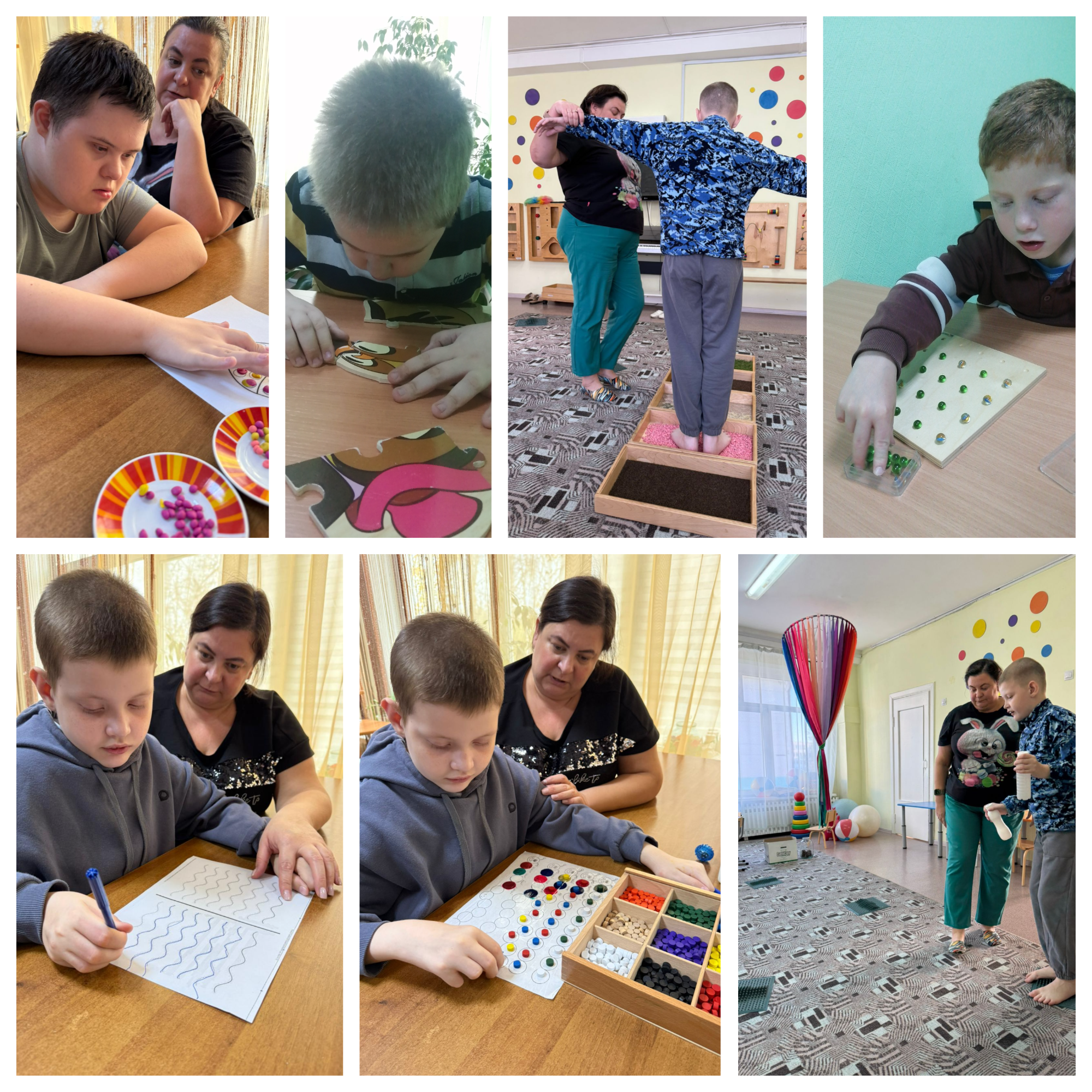 В данной статье мы расскажем, как в нашем Центре Семьи, в отделении социальной реабилитации детей, проходят занятия по разным направлениям, хотим поделиться одним из них! Мы решили применить нейросенсорные упражнения, которые помогут активно воздействовать на все органы чувств. Нейросенсорная интеграция-это процесс, при котором мозг ребенка воспринимает и обрабатывает сенсорную информацию (звуки, запахи, прикосновения). Когда этот процесс нарушен, дети могут испытывать трудности с концентрацией внимания, поведением и эмоциональным контролем. Наши занятия проводятся индивидуально и включают в себя; релаксационные упражнения и практики направленные на стимуляцию когнитивных и двигательных навыков, игры, физические упражнения и творческие задания! Все это помогает нашим деткам лучше воспринимать окружающий мир и эффективно взаимодействовать с ним.